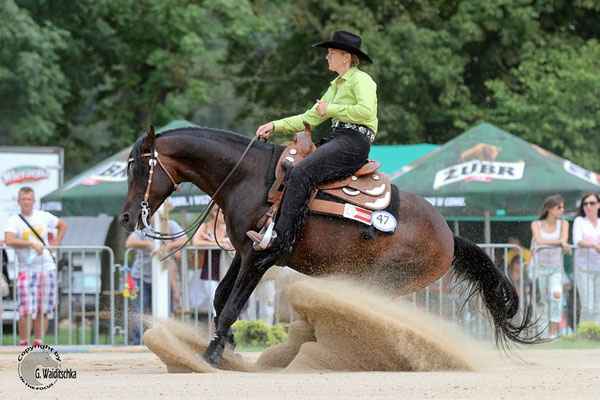 Auf dem Höhepunkt seiner Karriere gewann er bei den Europameisterschaften 3 Goldmedaillen, in Reining, Trail und Western Pleasure! Das ist ein Statement!